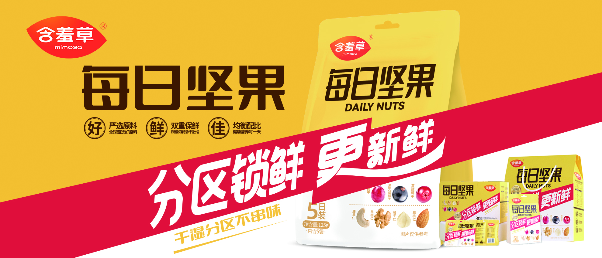 含羞草品牌定位于休閑食品,旗下有果干、堅果、核桃、葡萄干、山楂等美味、健康、特色的休閑系列食品。集團公司投入優(yōu)勢資源,打造“含羞草”為休閑食品行業(yè)中領導性品牌,建立鮮明的模式。2007年含羞草被認定為“中國馳名商標”。